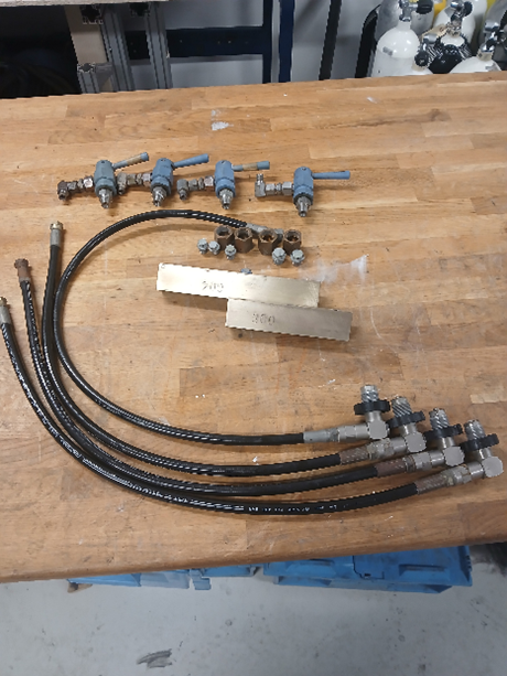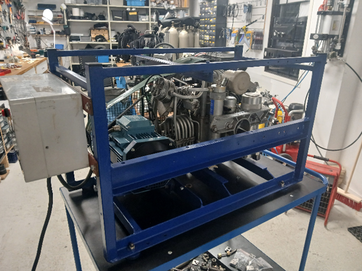 • Äldre fyllningssystem för 200/300 bar (demonterat, i behov av service/översyn, medföljer som reservdelar/projekt).